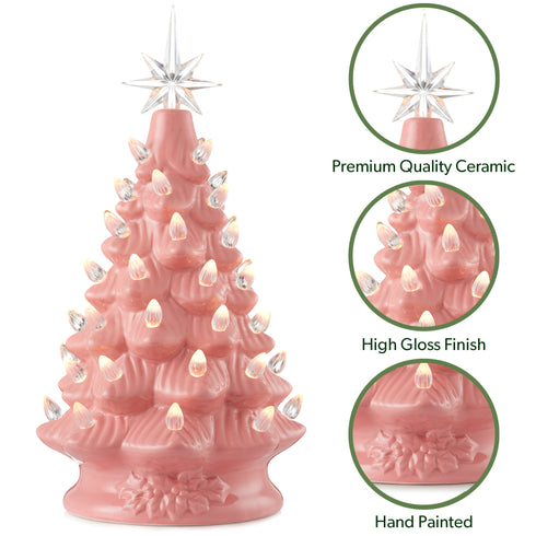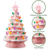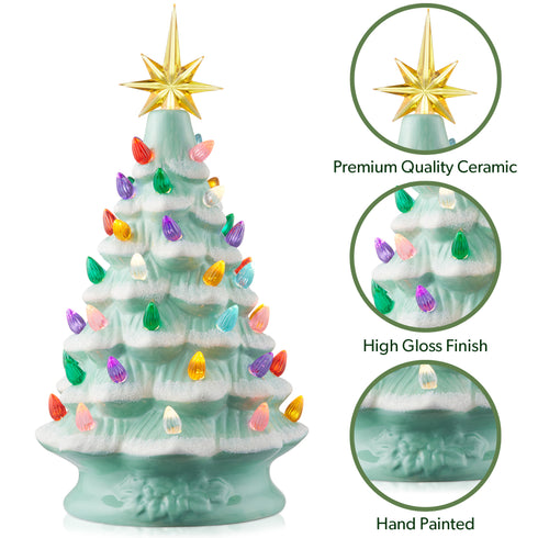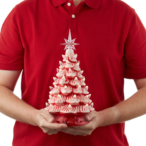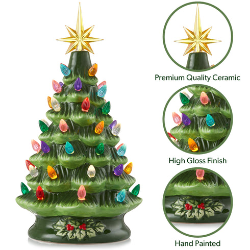 12-in Hand Painted Ceramic Christmas Tree - Pre-Lit Tree with Star
