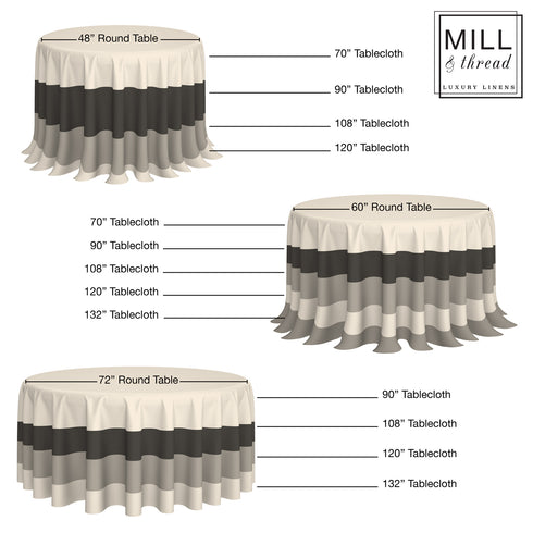 - Timeless elegance: Modern yet classic, Mill & Thread's sophisticated, seamless one-piece design instantly updates and transforms an ordinary table into a glamorous presentation for any event. Constructed to create a beautiful drape, this tablecloth will effortlessly conceal unattractive table legs, power cords, or the like.