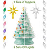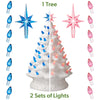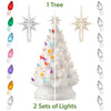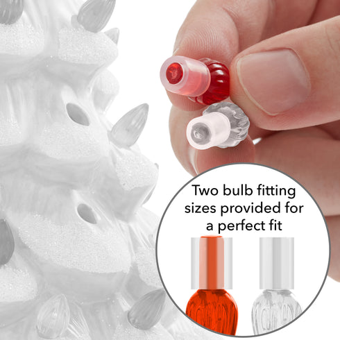 - Two trees in one: Our ceramic Christmas tree comes with two sets of bulbs giving you options to decorate as you choose. You can personalize the look of your tree, as each bulb and topper sit in a replaceable plastic fitting that keeps it firmly in place. Bulb fittings are provided in two sizes to accommodate variations in the hole sizes. Set includes: One ceramic tree, 128 bulbs, two star toppers with plastic fittings, and 64 plastic bulb fittings.