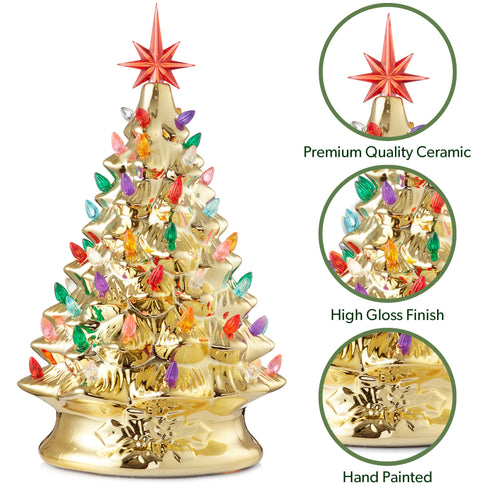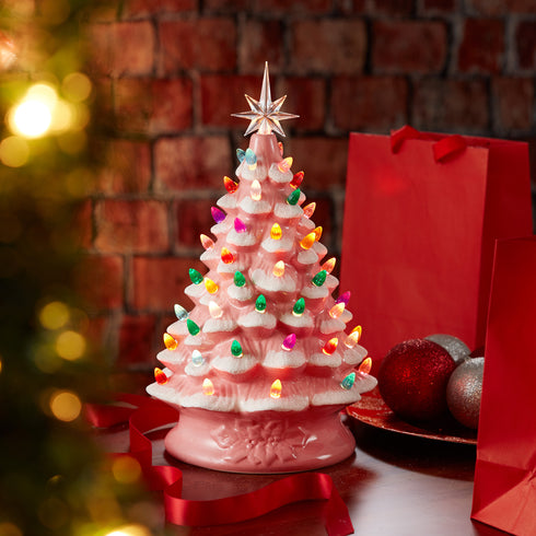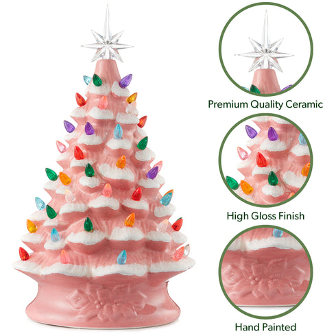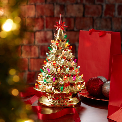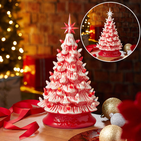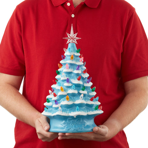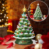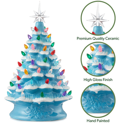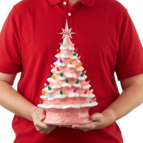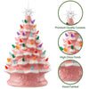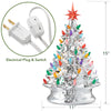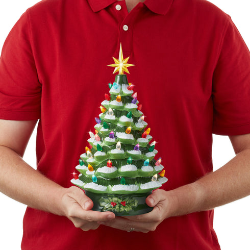 15-in Hand Painted Ceramic Christmas Tree - Pre-Lit Tree with Star