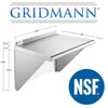 These heavy-duty wall mount shelves by Gridmann are constructed from 18-gauge #430 stainless-steel and are perfect for use in any kitchen, laundry, janitorial room, garage, or anywhere additional storage is needed. They are NSF certified to meet strict standards for public health protection and built for high-volume use to last a lifetime. They are 18-inches deep and feature a large, space-saving design that offers plenty of storage as well as a 1-1/2 inch tall backsplash. The front edge of each shelf is rounded for working comfort and wall support brackets provide maximum stability.