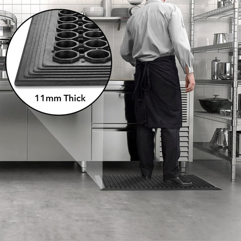 - Anti-fatigue comfort: Featuring anti-fatigue properties, these restaurant floor mats provide exceptional support for staff who spend long hours standing. The cushioned rubber surface reduces strain on feet, legs, and back, promoting better posture and comfort throughout the workday.