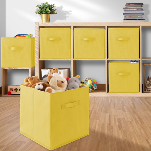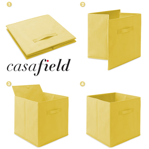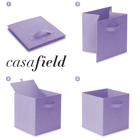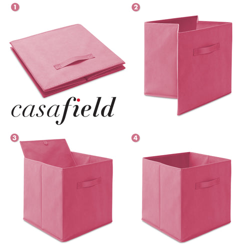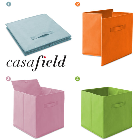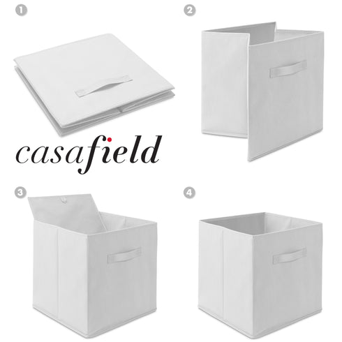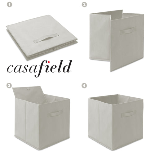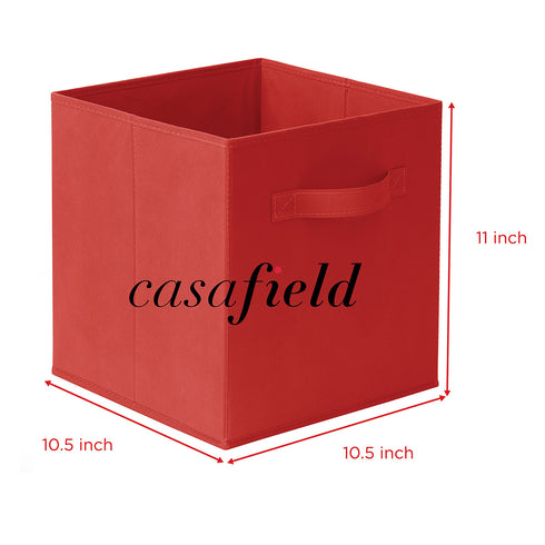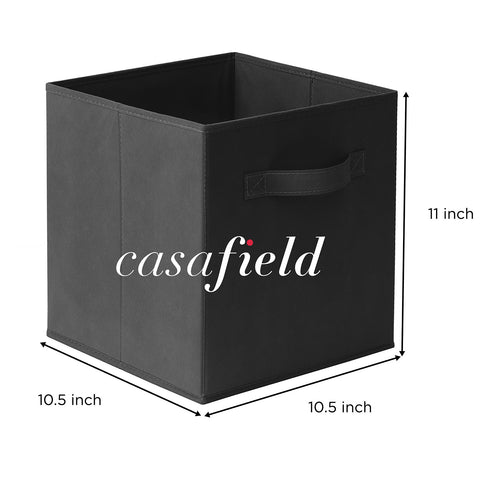 Instantly organize toys, books, magazines, photo albums, blankets, clothing, and more with these sturdy yet lightweight cube storage bins from Casafield. Constructed of heavy-duty, nonwoven polypropylene fabric material, and reinforced with extra cardboard support, these cloth basket organizers, with dual handles, look just like drawers. An ideal solution for instant storage in any space, these fabric cubes create a streamlined and sleek look in any room. Perfect for college dorms, kid's rooms, the office, garage, spare closet, and more. Casafield storage cubes are designed to fit most storage cube shelving units and cubby organizers.