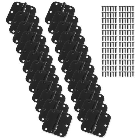 - Specifications: Each hinge measures 3-1/2 inches (top to bottom) by 3-1/2 inches (wide) with 5/8" radius rounded corners. No. 9 x 3/4" wood mounting screws are included per hinge for fast and easy installation. Removable pins for quick and easy door removal.
