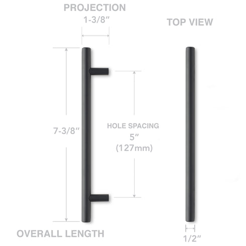 - Product specifications: Each cabinet pull measure 1/2" in diameter with a 1-3/8" projection.