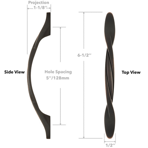 Solid Braided Cabinet Pulls Oil Rubbed Bronze 5-in Hole Centers