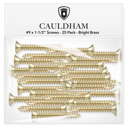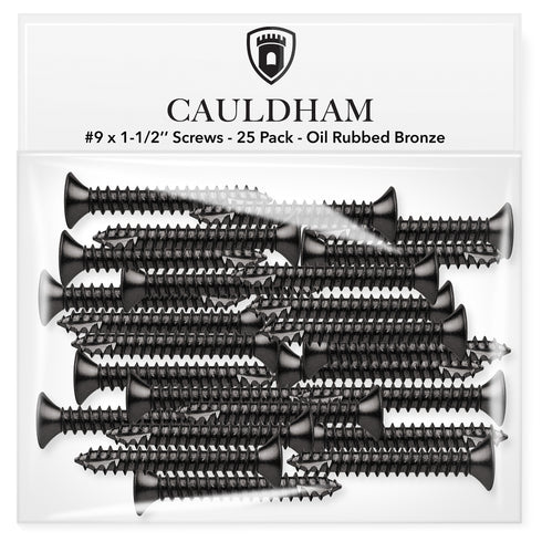 Whether your project is renovating an existing set-up or for new construction, interior or exterior, these heavy-duty hinge screws from Cauldham provide the utmost in performance and durability. Crafted from a precision top-grade alloy steel, these screws feature a stunning, corrosion-resistant finish and are superior in tolerance, concentricity, and straightness. Boasting a self-drilling tip, each of these top-grade screws use a standard flat head that requires a Philips Head screwdriver or bit for a quick and easy installation. Color matched to the most common door hinge finishes, these screws will maintain a professional and stylish appearance when upgrading your home. These screws are perfect for securing hinges on doors, cabinets, and other furniture as well as any other project needing a top-grade wood screw. These No. 9 x 1 1/2” full thread wood screws provide the best fit for the screw size, increasing the security of your doors. Each set includes 25 screws, ensuring you have plenty for multiple projects.Cauldham is the premier source for professional-grade hardware and fixtures that combine stylish design with exceptional construction and durability.