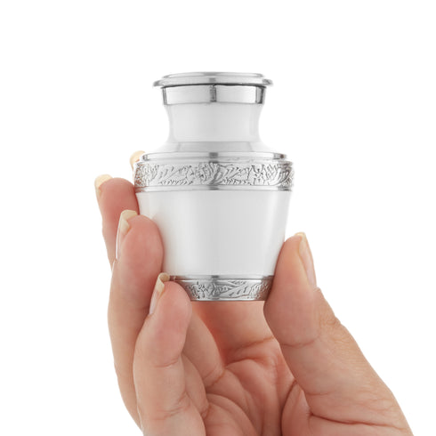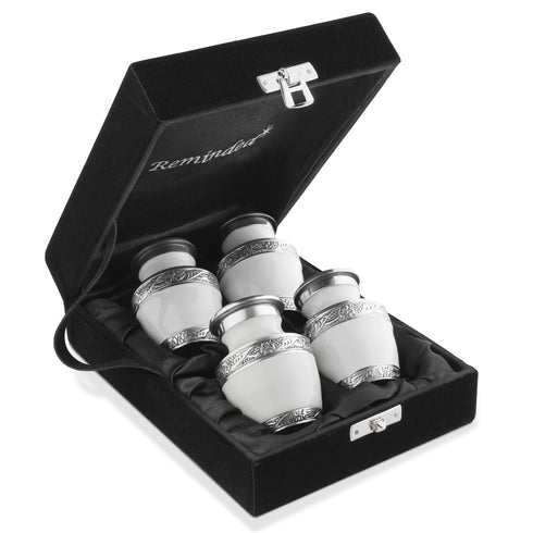 Set of 4 White Keepsake Cremation Urns with Velvet Case
