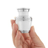 Urns are designed with years of expertise and skilled master craftsmanship for long-lasting strength and durability. Our handcrafted aluminum urns are engraved and polished with an elegant finish. Urns come in a satin lined case with 4 black velvet bags that closes securely with a dual drawstring to preserve the exterior, protecting the urn from tarnishing, scratches, damage, and dust. All urns are made with threaded lids, ensuring that ashes are preserved securely with the utmost respect and tribute they deserve. Reminded Urns are designed to honor and cherish the memories of your loved one. Overall Urn Measurements: 2-3/4" H x 1-1/5" W. Lid Opening Diameter: 1-1/8" . Base Diameter: 1-1/8". Approximate capacity: 5.3 cubic inches EACH.