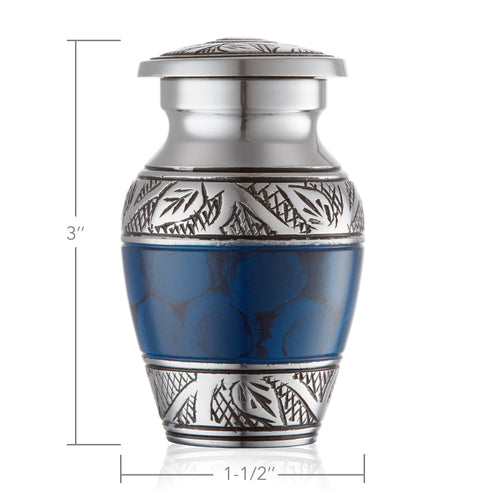 Set of 6 Blue Keepsake Cremation Urns with Velvet Case
