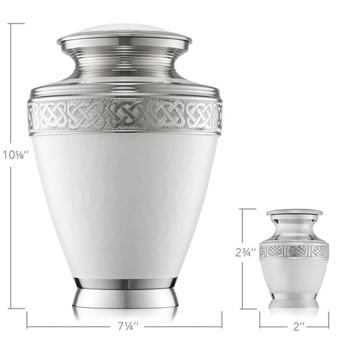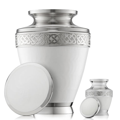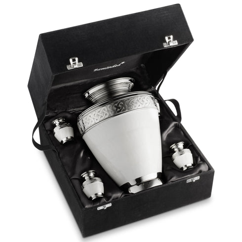 White Celtic Cremation Urns for Human Ashes - 1 Adult + 4 Keepsake