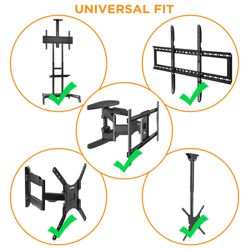 - Universal compatibility: Works with practically all TV mounts/brackets on the market including low profile, fixed, tilting, full-motion/swivel single-arm wall mounts, double-arm mounts, ceiling mounts and rolling TV stands