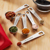 Each spoon is crafted from one solid piece of stainless steel and is finely etched with each measurement for lasting durability. The set of measuring spoons is held together with a removable D-ring that opens for easy access to each individual spoon as needed. Attach the ring and securely close to nest the spoons together for convenient storage.
