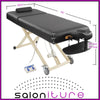 This Saloniture professional electric lift massage table was designed with exceptional durability, functionality, and comfort to meet the needs of all of your clients. With a simple touch of the convenient and quiet hands-free foot pedal, a heavy-duty electric motor enables the table to be comfortably lowered or raised from 19" inches up to 35".Constructed of premium-grade steel frame and legs; the table is designed to accommodate a maximum working weight capacity up 500 pounds. 4-3/4" diameter wheel casters with locking mechanism make your table safe for any floor surface.3” high-density foam, provides ample support while contouring to the body. This massage table comes with a manual adjustable tilting backrest operated by a pneumatic gas lift assist. Adjustable headrest and face cradle outlets at each end of the tabletop complete the fully symmetrical design, along with a matching semi-round bolster for additional customizable comfort. Standing table dimensions: 85" long with headrest x 30-1/4" wide.Table dimensions without headrest: 74" long x 30-1/4" wide.Adjustable Height: 19" inches up to 35".Adjustable tilt of backrest to 50 degrees.Face cradle measures 11" wide x 11" long x 2-3/4" thick.Arm sling measures: 22-3/4" side to side x 9-1/2" front to back x 1-3/4" thick. Semi round bolster measures 14" long x 6" wide x 3" thick.Table Weight: 146 lbs. Saloniture designs reliable massage equipment and accessories, trusted for use in professional settings including spas, salons, and clinics.