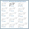 Each Shelf Includes: Wall-Mount Shelf, Mounting Brackets, Installation Screws, Anchors, and Screw Covers for Shelf Underside. *** These products are designed and finished for use in a commercial environment. Therefore surface imperfections such as scratches, scuffs, and indents may be found. This is normal and to be expected on products of this nature. *** Variation Includes NSF: GR44-SH1436, GR45-SH1448, GR46-SH1460, GR61-1424, GR63-1472