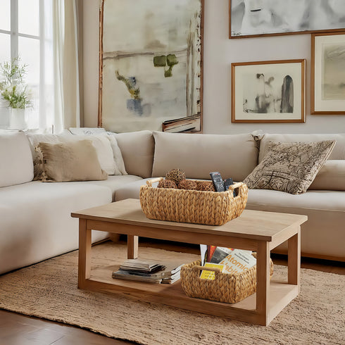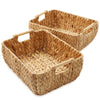 These oval storage basket sets are the perfect combination of functionality, style, and sustainability for your home organization needs. These baskets with wooden handles are available in three sizes: small, medium, and large. Instantly organize your pantry, kitchen shelves, bathroom, laundry room, and more with Casafield's rectangular storage baskets. These versatile storage bins are handwoven with eco-friendly water hyacinth or seagrass and feature wood handles on both sides for easy access.