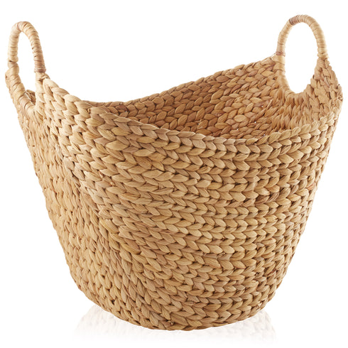 Crafted from natural and sustainable water hyacinth, this basket adds a touch of natural beauty to your living space. The natural, earthy tones of water hyacinth blend seamlessly with various interior design styles, from boho to coastal to farmhouse. This versatile storage basket keeps your space organized and enhances your home's decor with its eco-friendly, rustic elegance.