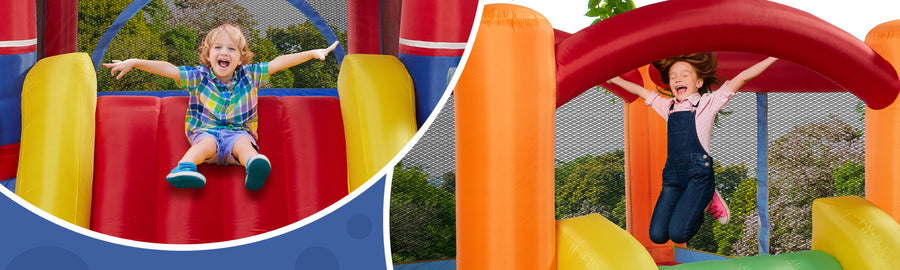 Looking for bounce houses for sale near you? Well, look no further! We have a huge selection of jumpers, bouncers, bounce castles, and inflatable slides in stock and ready to ship today! From enchanting princess castles to wild jungle jumpers fun complete with slides, we sell a wide selection of commercial-quality bounce houses to suit any child’s dream. Why bother with the expense and hassle of renting a bounce house when you can own one at an affordable price and use it again and again! Families and businesses alike love our bounce houses, making us proud to be one of America’s top bounce house distributors.