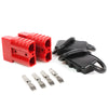 Driver Recovery Products' quick connector set gives the user a simple, convenient way to connect and disconnect power to winches and other electrical devices. These are constructed of tough polycarbonate with a fitted rubber boot on each end to guard against dust, moisture, corrosion, and the elements. The connector ends are identical so that the user may connect either end to the power or load side. They are mated, meaning they connect in only one direction (polarity). The connectors are designed for low voltage use (12-36 volts DC). The set is compatible with any winch, but the ends may not match the connectors included with other brands. The connectors are suited for high-current use with winches rated 8,000 pounds or higher. The true rated capacity is 175 amps, although some dealers quote higher numbers for similar or even inferior connectors. Terminal pins are 0.35" in diameter and can accept up to a 4 gauge wire. Connectors measure 3-1/8" long x 2-1/8" wide x 1" thick and measure 5-1/4" x 2-1/8" x 1" when connected as a set. The set is easy to use; just insert the wires into the terminal pins, crimp or solder. The pins can then be inserted into the connector housing and lock in place. Each kit comes with a pair of connectors (2 connector ends, 4 terminal pins, and 2 rubber boot caps).